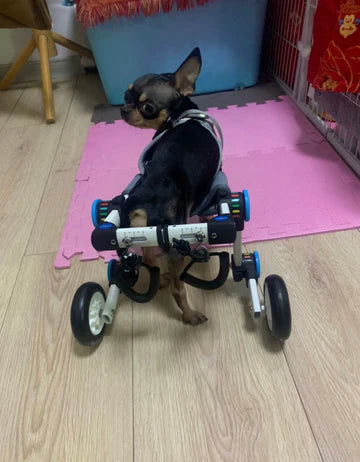 My dog was diagnosed with patellar dislocation at just three months old and eventually lost the ability to walk. We tried another wheelchair before, but this one was clearly better made despite a similar price.
